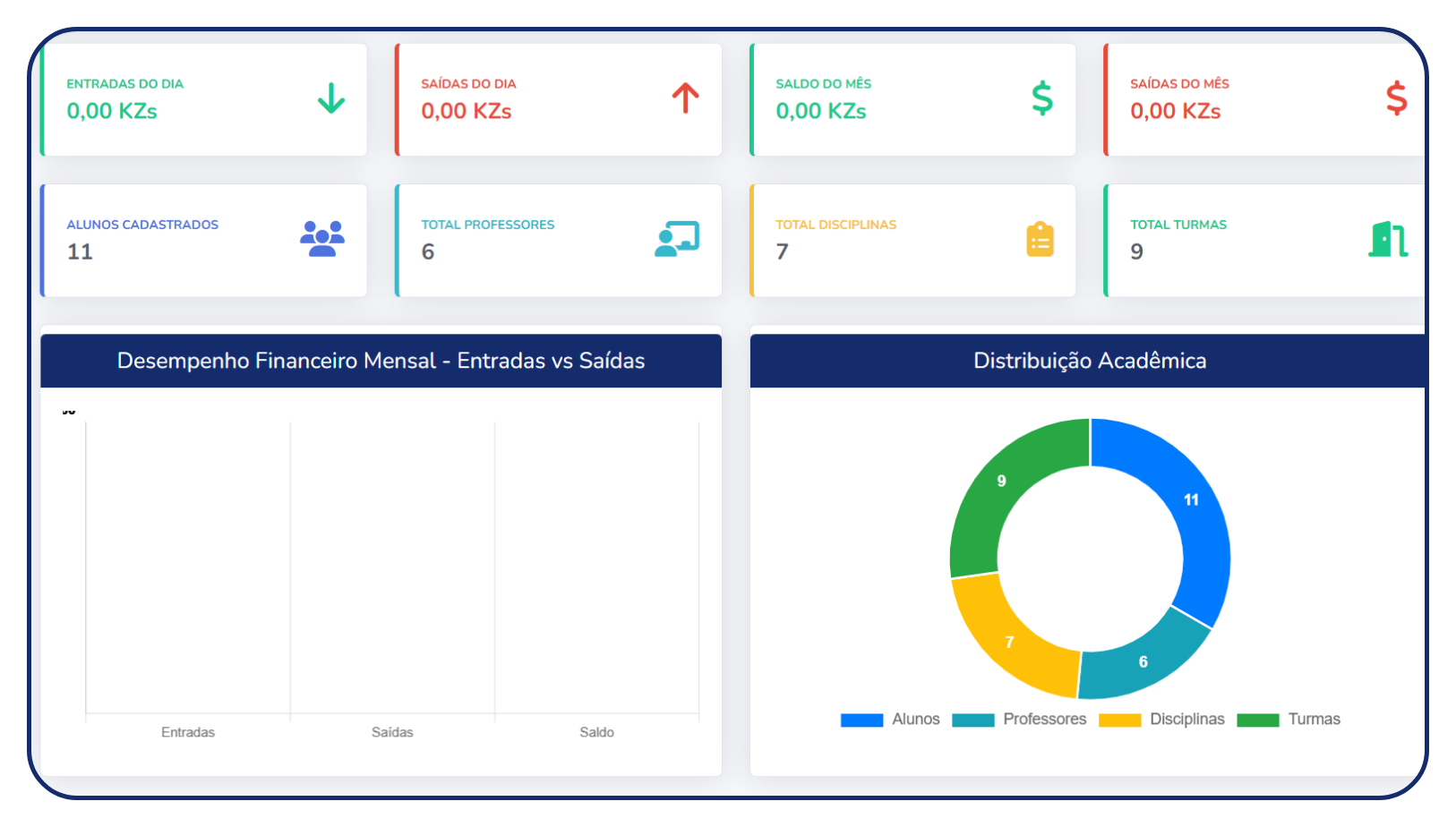 Controle académico, financeiro e administrativo numa única plataforma. Reduz trabalho manual e melhora a tomada de decisões estratégicas.